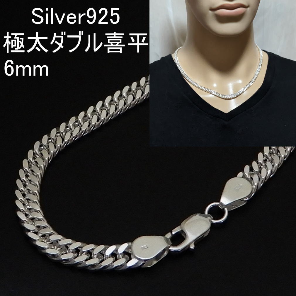 極太 6mm 太め チェーン ネックレス メンズ ダブル 喜平ネックレス シルバー925 シルバーネックレス メンズネックレス シルバーチェーン キヘイ きへい シンプル 喜平 チェーン だけ 男性